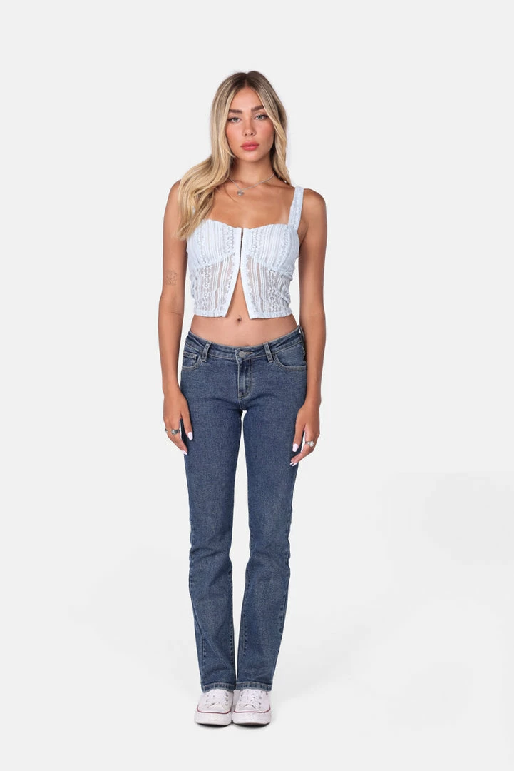 - Deadly love. Corset top in floral lace with eye and hook front closure, sweetheart neckline and cup seams.