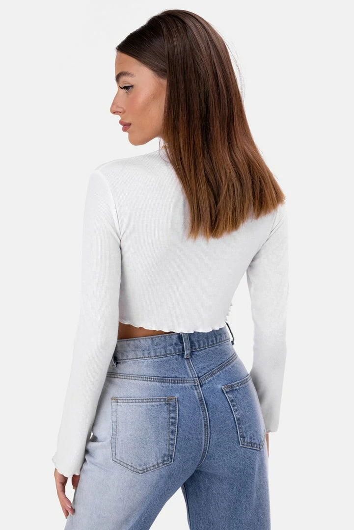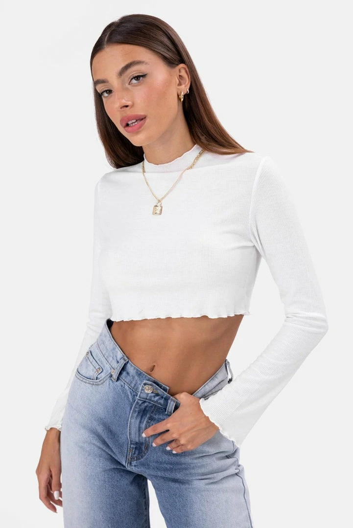- Makin’ waves everywhere you go, babe. Long-sleeved ribbed and stretchy t-shirt with a high neck and super-fun wavy outline.