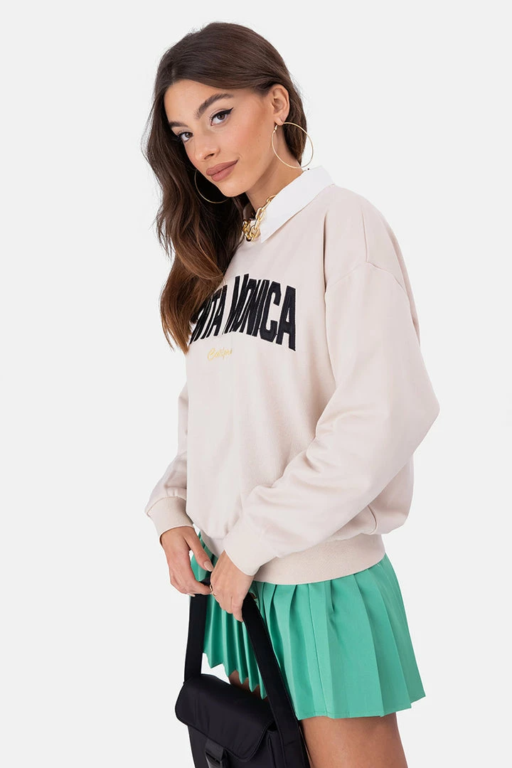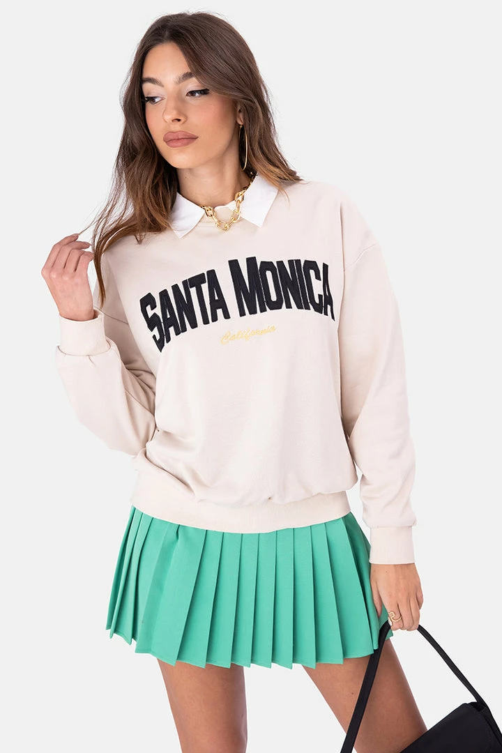 - In a Santa Monica state of mind. Relaxed sweatshirt featuring embroidery in the front, crewneck, dropped shoulder line, plus fitted cuffs and hem.