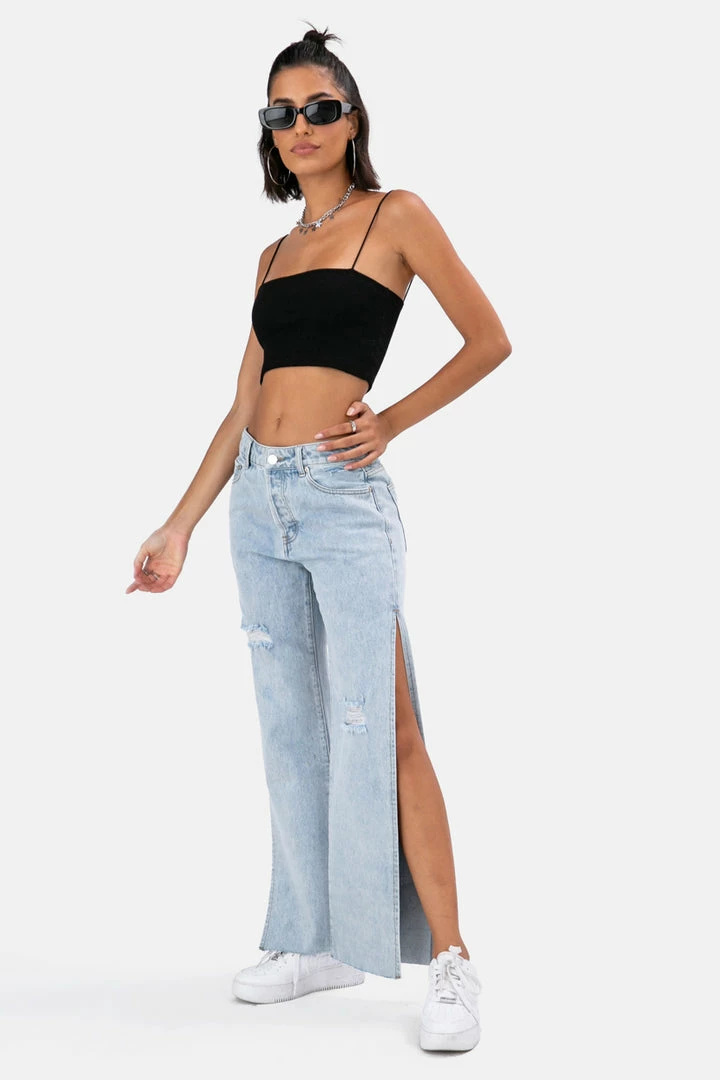 - Can’t top this! Super cropped tank top made of ribbed material, with a square neckline and thin, stretchy straps.