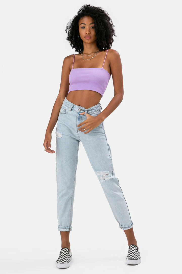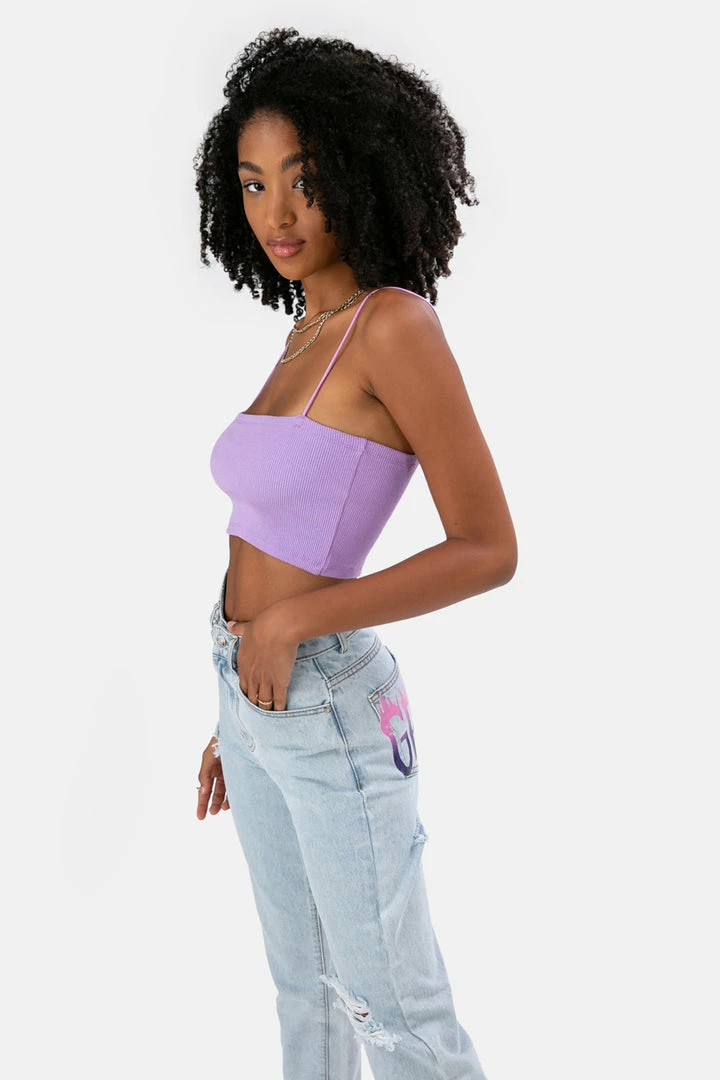 - Can’t top this! Super cropped tank top made of ribbed material, with a square neckline and thin, stretchy straps.