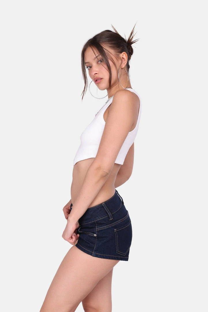 - Spice up your basics. Ribbed tank top in mega-cropped fit with front, rounded hem, crewnck, racerback and low shoulder line.