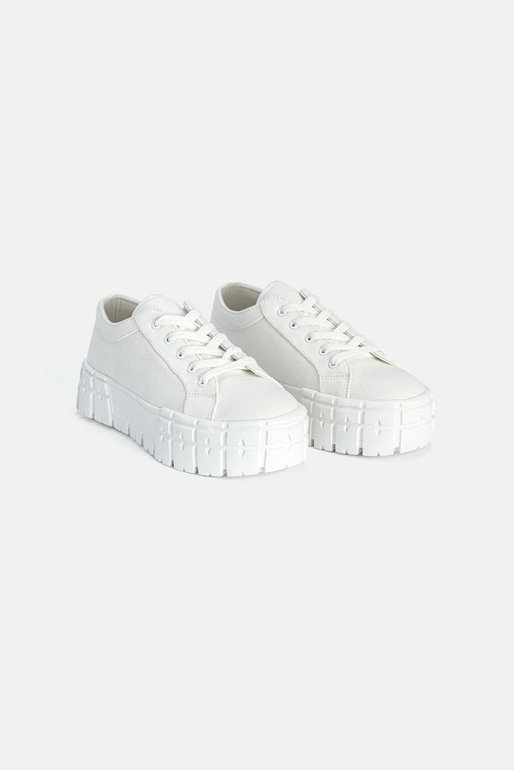 - Hi, big stepper. Fabric sneakers with lace-up closure, tonal seam detail, and stylish platform sole.