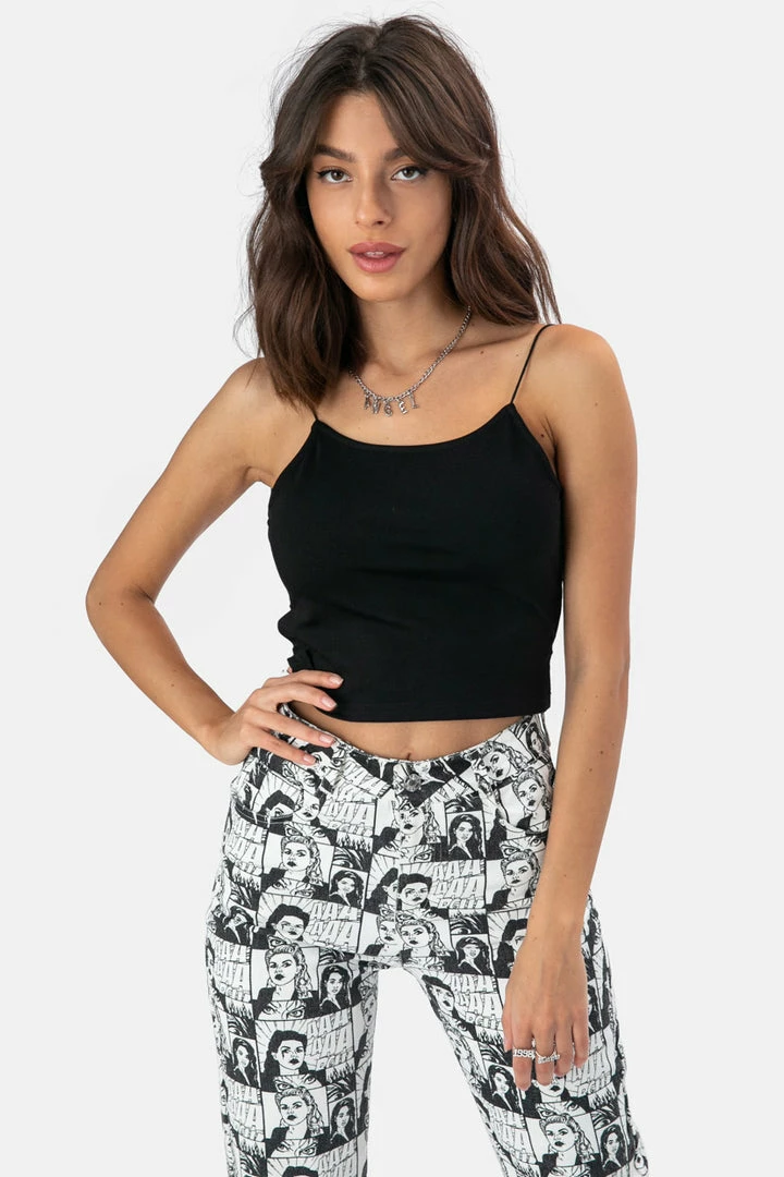- Look back at it! Round neck crop top in a stretchy fabric featuring open back with criss cross detail and thin spaghetti straps
