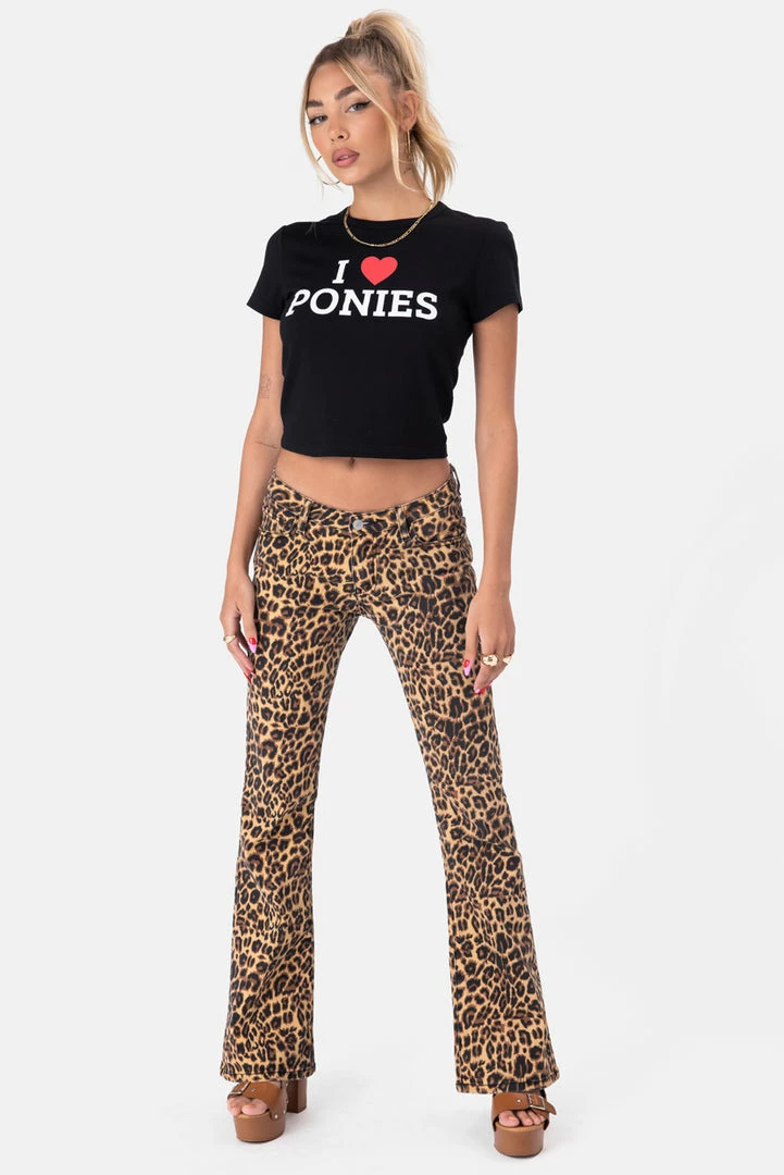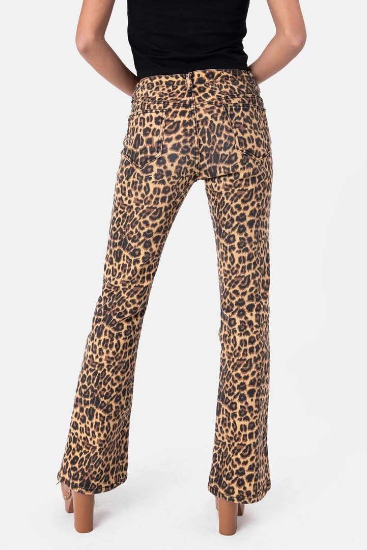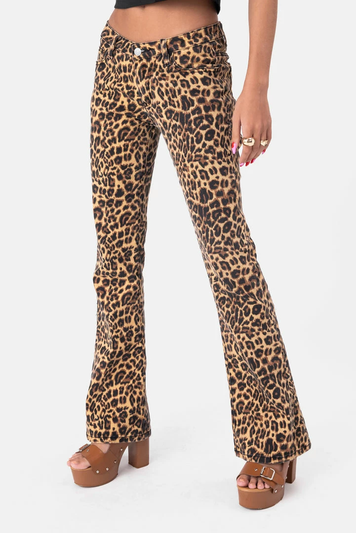 - In your wildest dreams. Stretchy flared jeans in low-rise fit and all-over leopard print with button and zip closure, 5-pocket design and belt loops.