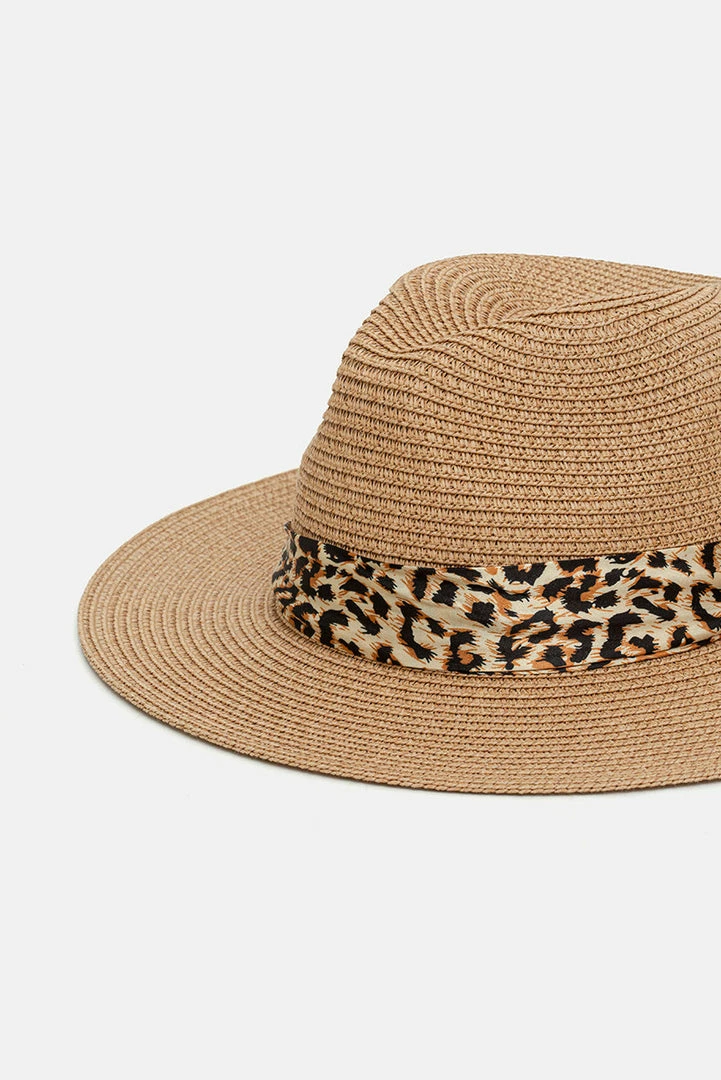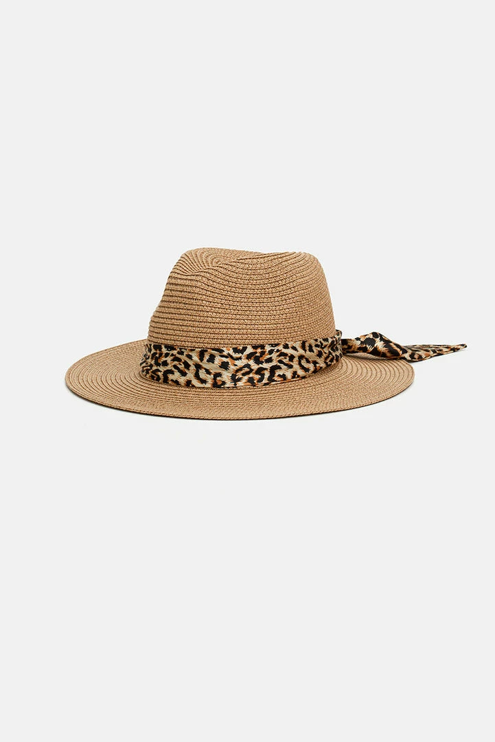 - Vacay beast. Classic straw sun hat with a wide brim and removable leopard band.
