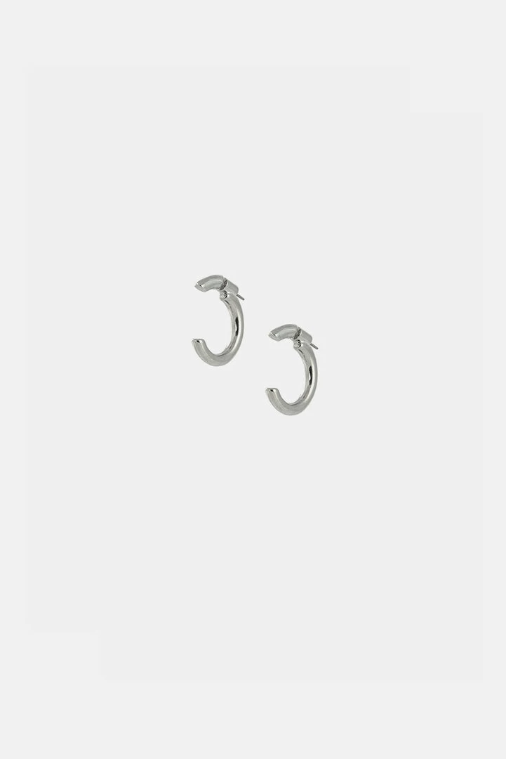 - Round and round we go. Small open-end metallic hoop earrings with a post-back closure.