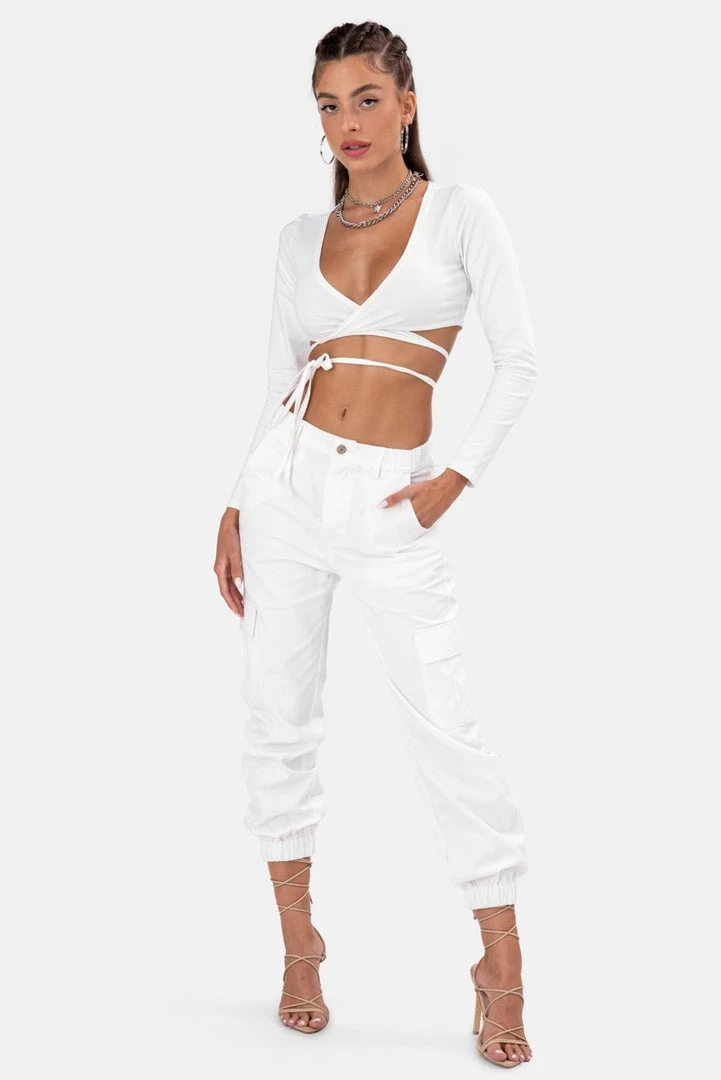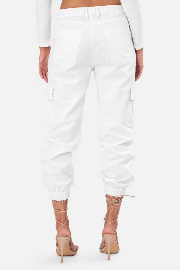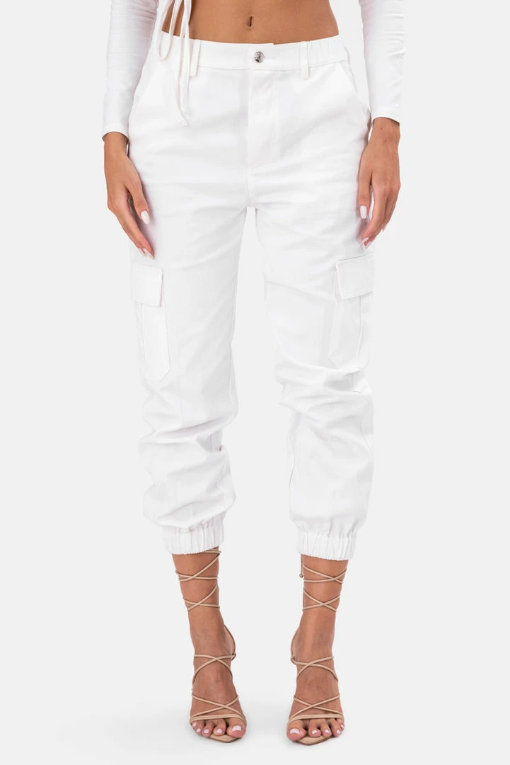 - Pocket it like it’s hot. Set at a natural waist rise, these cargo pants feature an elastic waistband with hidden button closure. Classic cargo pockets at the hips, side inseam pockets, back patch pockets and fitted cuffs. Superb.