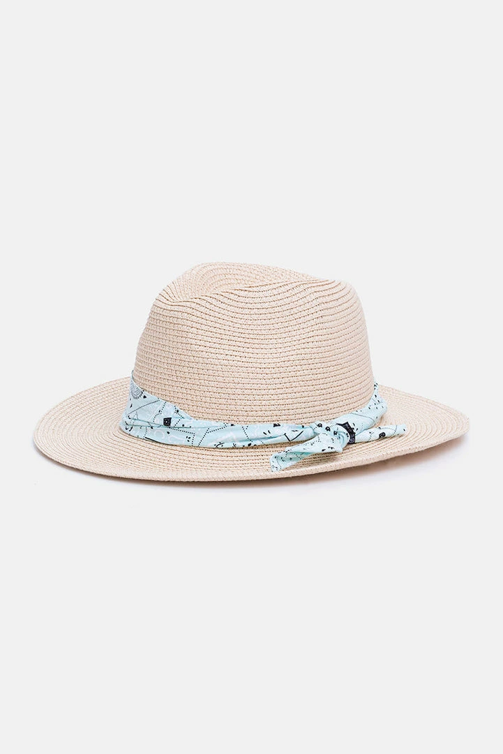 - Resort mode on. Classic straw sun hat with a wide brim and bandana band detail.