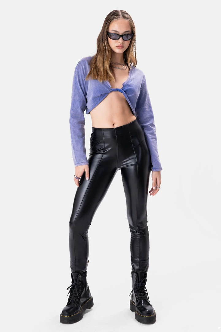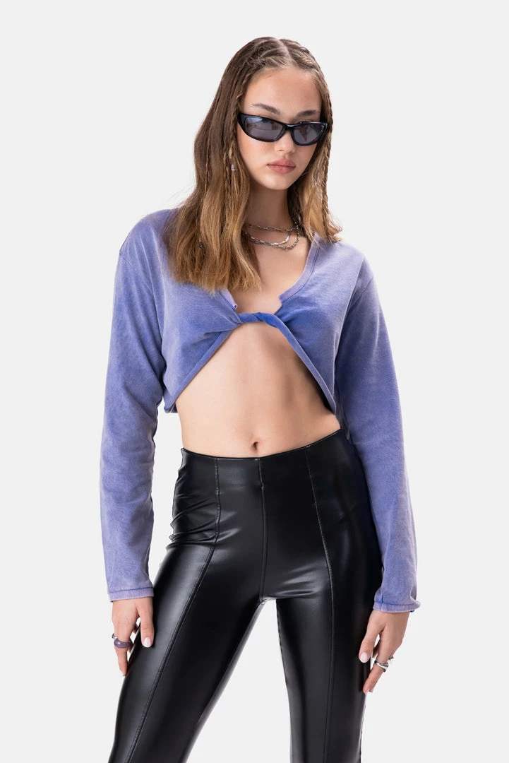 - Loosen up, babe. Cropped loose top in lightweight, washed jersey featuring front twist detail. Including ribbed V neckline, long sleeves with slim ribbed cuffs and raw-cut hem.