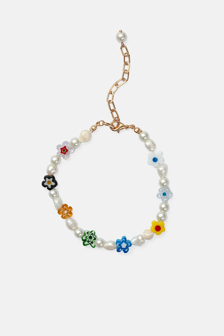 - Flower is ma power. Bracelet in super cute mixed beads with adjustable lobster clasp closure.