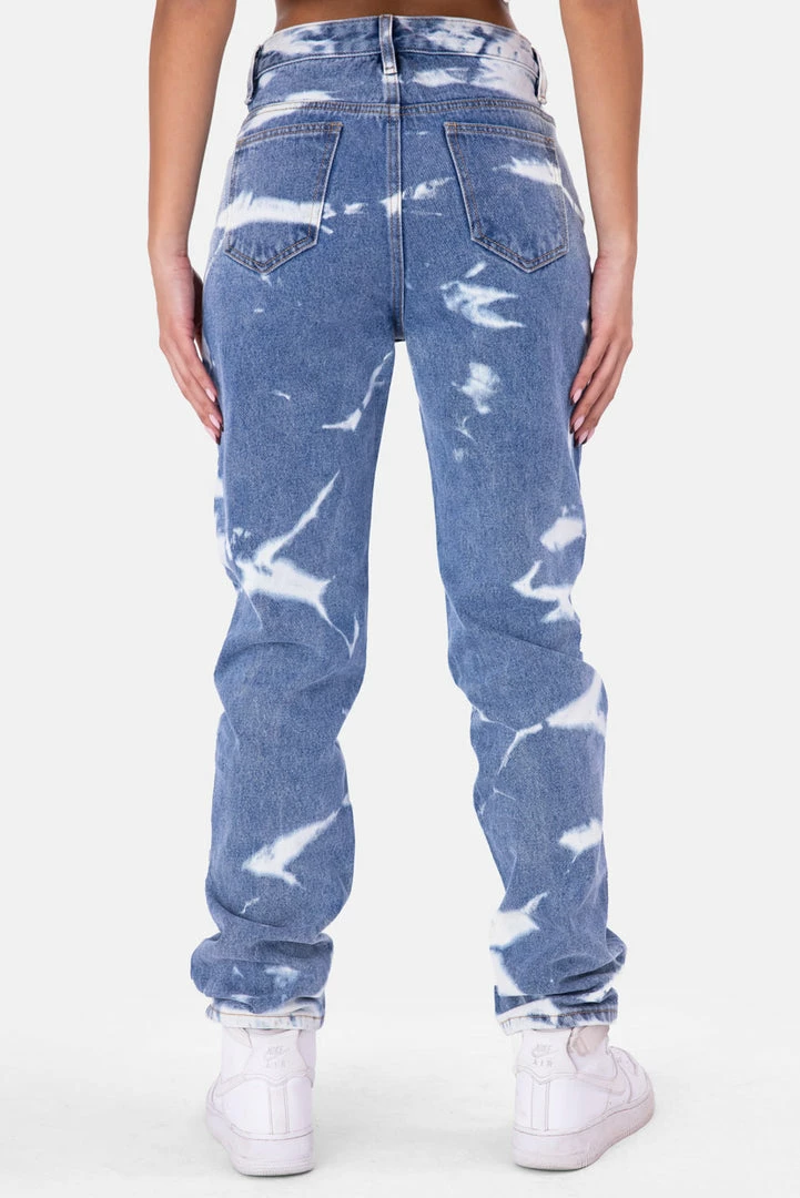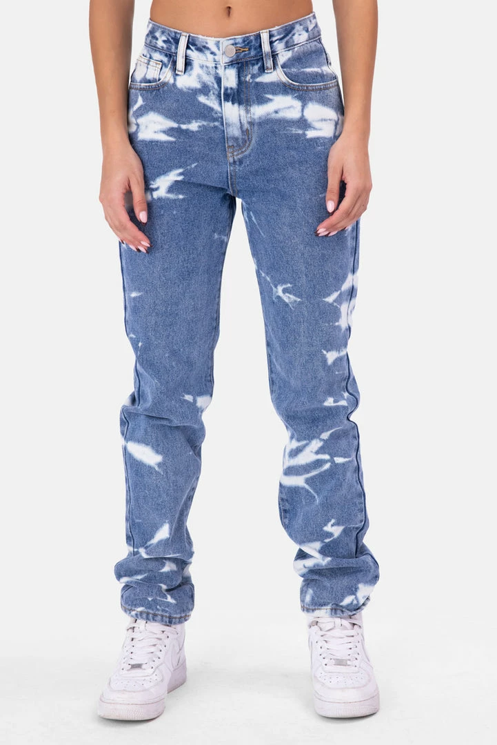 - When the chic is on fleek. Slouchy fit mom jeans with bleached details all-over, button and zip closure, belt loops, front round pockets and back patch pockets.