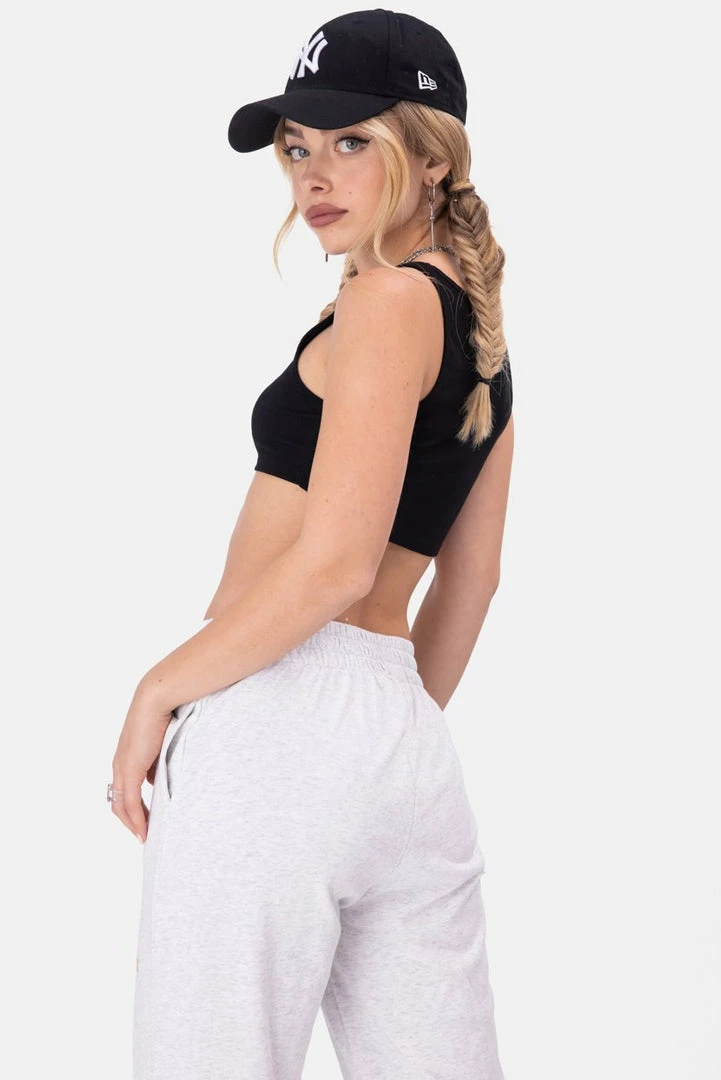 - A must have, period. Extra cropped, fitted, ribbed top with a scoop neck, scooped arm cut, racerback and an elasticized hem.