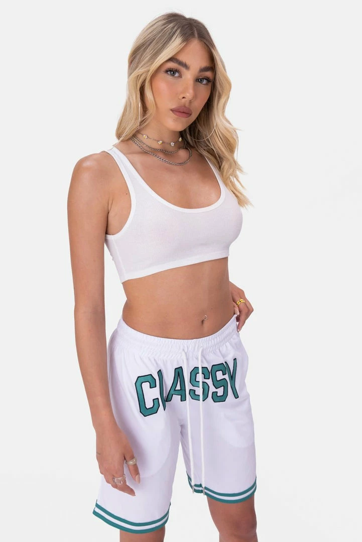 - A must have, period. Extra cropped, fitted, ribbed top with a scoop neck, scooped arm cut, racerback and an elasticized hem.