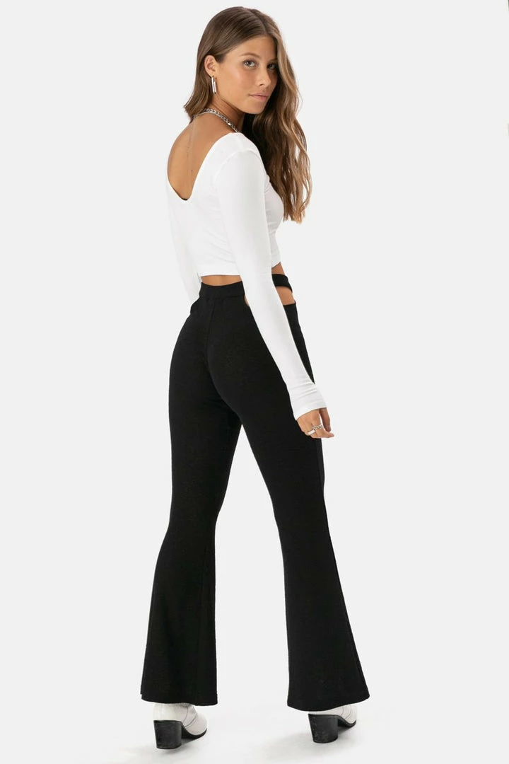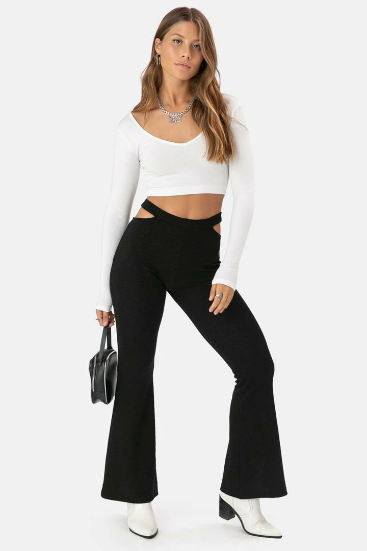 - Long sleeve crop top with deep-v neckline